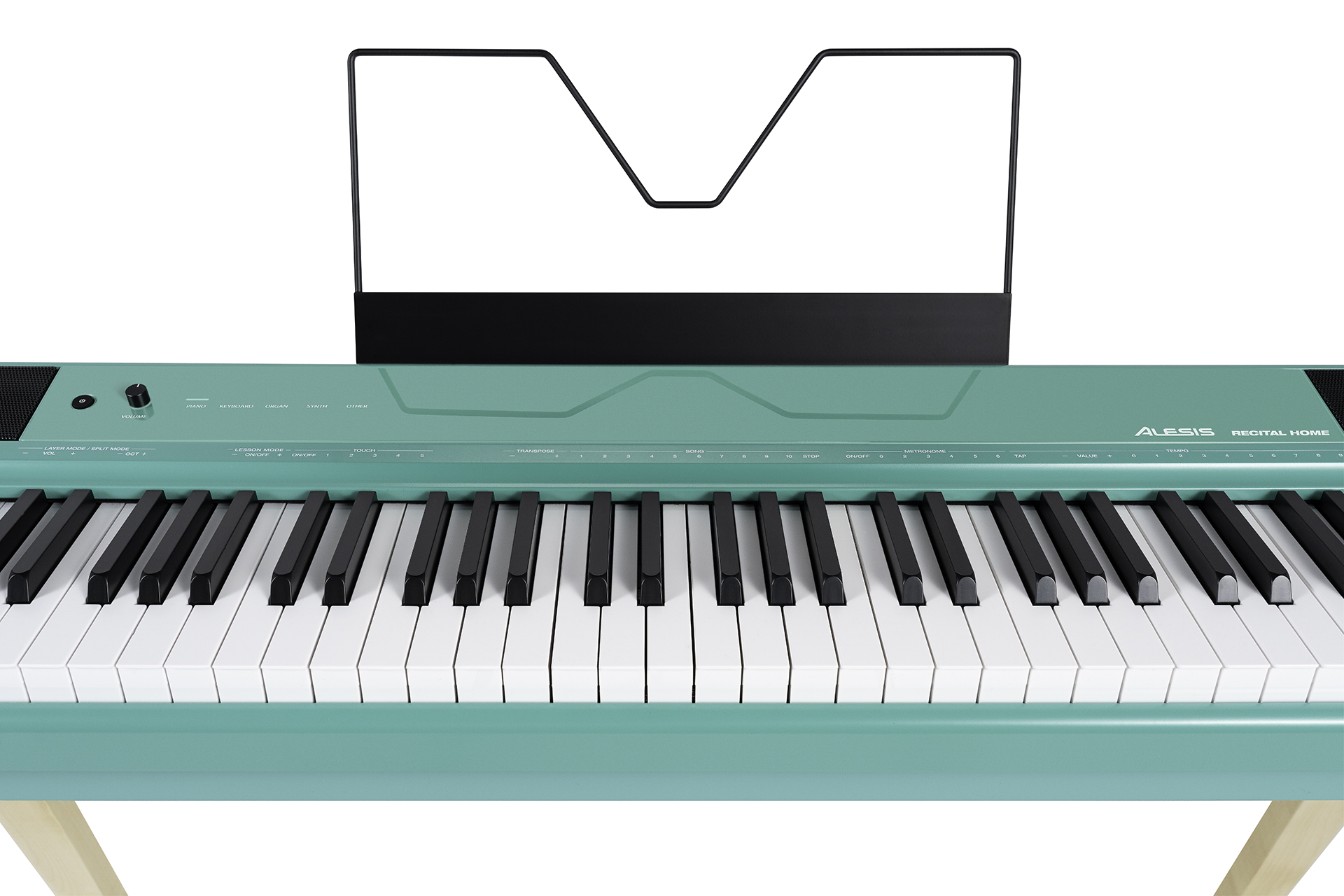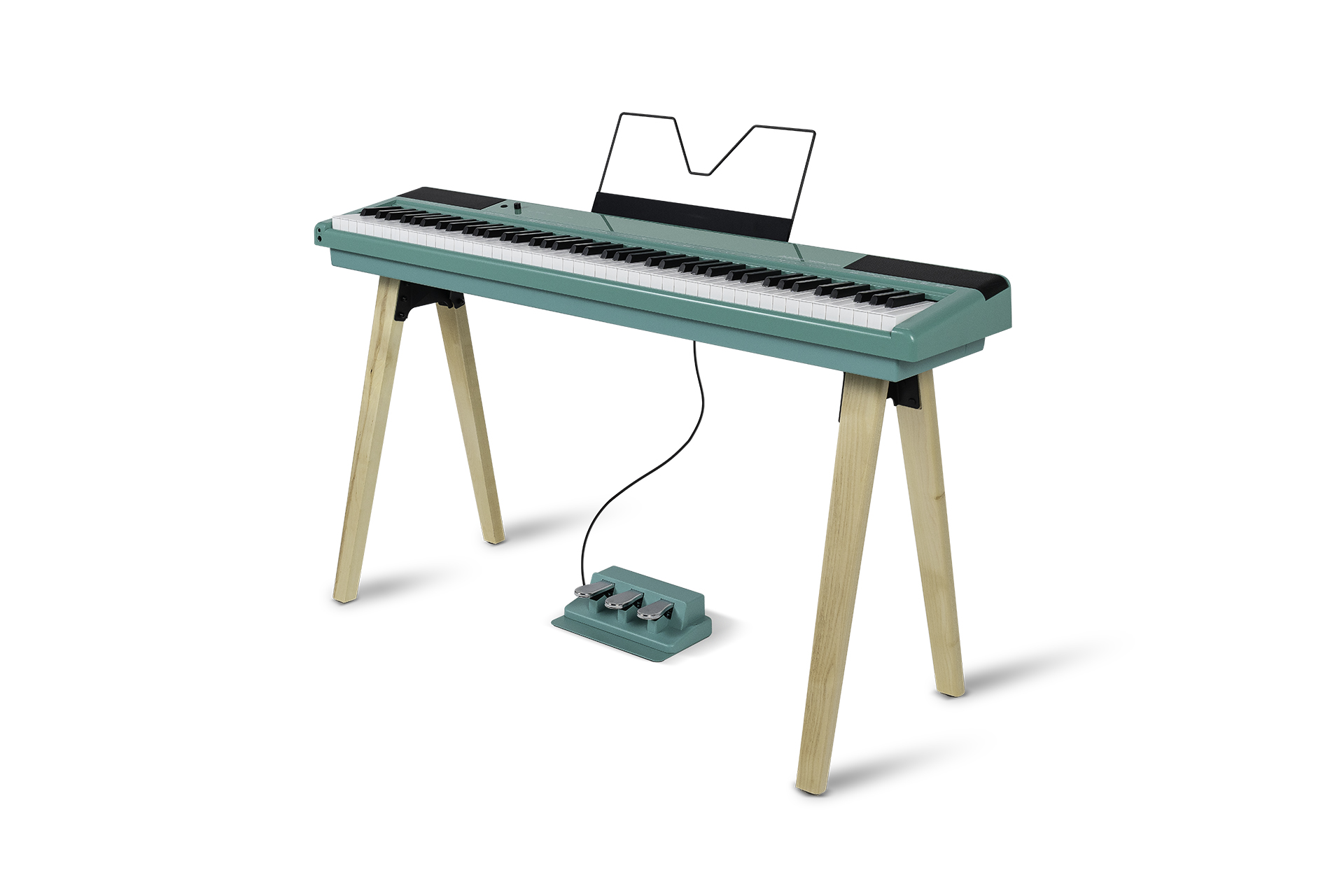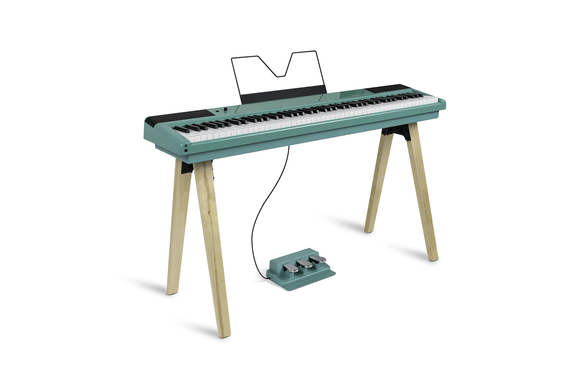 The Recital Home is a contemporary home digital piano that delivers an authentic and inspiring playing experience paired with stunning looks (available in turquoise and black) and is sure the be the new conversation piece of your home. Sporting an incredibly easy-to-use touch control panel with an impressive selection of inspiring sounds, the Recital Home features 88 graded hammer-action weighted keys with adjustable touch response that mimic the feel of a traditional grand piano, and a premium 20W speaker system built-in that fills your room with beautiful sound. Recital Home also includes a beautiful and sturdy 4 leg wooden stand that conveniently saves space while providing robust support for the piano, as well as a 3-pedal unit that simulates the same functions as found on a traditional grand piano. Whether you're just starting your musical journey, or upgrading your current piano, the Recital Home is the ultimate statement piano for your home.